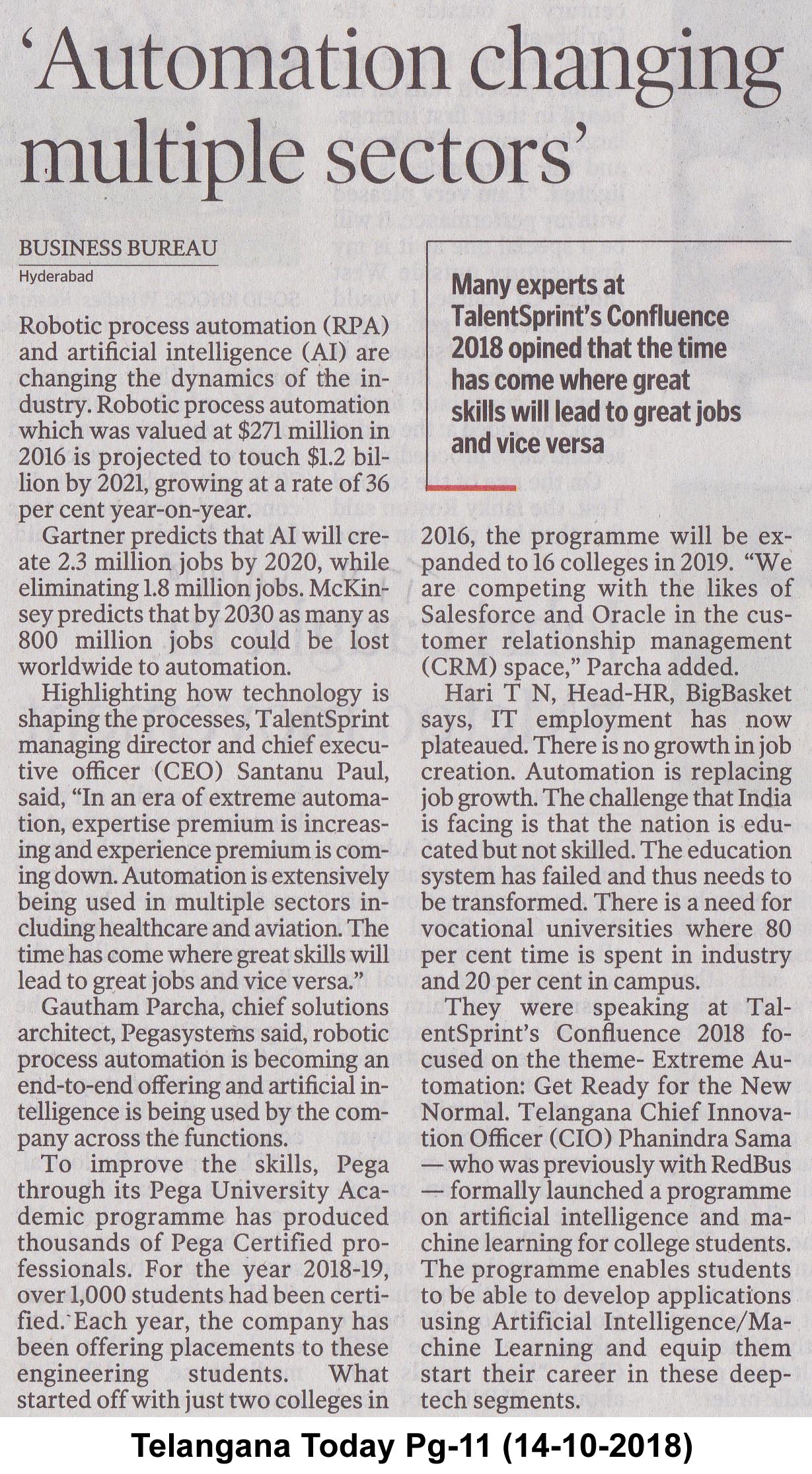 http://www.thehansindia.com/posts/index/Young-Hans/2018-10-15/Confluence-2018-focuses-on-technology-for-future/425301 https://telanganatoday.com/automation-disrupting-industry http://www.ragalahari.com/localevents/185834/talentsprint-hosts-confluence-2018-on-extreme-automation.aspx